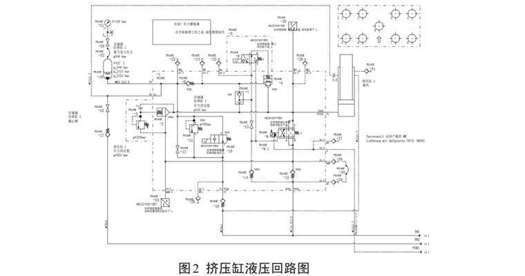 拉伸垫的挤压力是依靠滑块压上拉伸垫而被动产生的压力,压力大小的控制由伺服阀来实现。常见的压力下超故障有缸体活塞密封泄漏、安全阀损坏、伺服阀损坏、预充油液不足等形式。首先挤压缸上行是依靠 20bar 的预充压力推动活塞杆跟随顶冠上行至上死点,由于在该过程中每个缸的压力和位置都没有监控,即使出现预充压力不足、活塞没有上行至上死点都不会故障报警,如图2所示。在冲压力下超故障出现以后,可以在操控面板的帮助界面查看挤压缸预充压力是否正常,排除预充压力是否合适以后,再排查伺服阀以及伺服阀控制模块。在长时间停机或者拉伸垫大修以后出现挤压力下超故障,应优先检查插装式安全阀。由于插装式安全阀控制油和系统油都是来自挤压缸的油,而正常情况下安全阀芯都不动作,阀芯活动间隙被油泥填充,在检修或者启动期间,如果安全阀芯被意外开启,复位弹簧将不能使阀芯复位。阀芯没有复位,挤压缸下腔的就不能建立起需要的压力,导致故障产生。